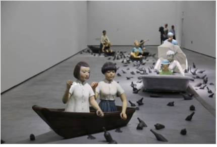 向京塑造了许多人物,她的作品多半比真人要大一些,脑袋大一些,眼睛也大一些。但她也不愿意被划分如超现实、超写实的艺术流派中去,“我可以非常诚实地说,我做活特别糙,做手不细,做脸也不细,但很多时候它会有一些细微的情感传递,可能通过手部动作和颜色表现出来的。其实这些东西特别不写实,但是在人的眼睛里变得写实了,因为它对应的不是真正的现实,是你的心理性的现实。”