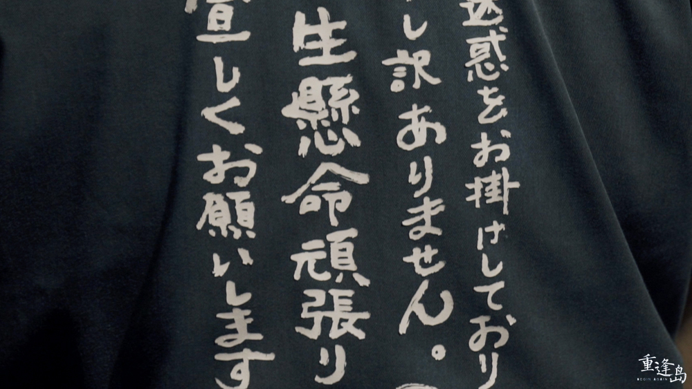 YAMATO 某成员衣服上的字样:“给您添麻烦了,非常抱歉。我会拼尽全力,请您多多关照”。